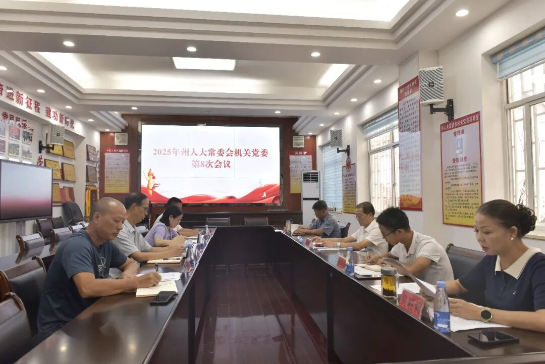 8月29日,州人大常委会机关党委召开2025年第8次会议,州人大常委会秘书长、机关党组书记、机关党委书记高俊华主持会议并讲话,机关党委委员出席会议,各党支部有关负责同志参加会议。