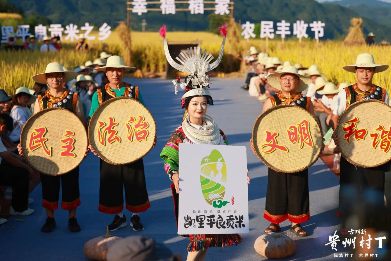 为深入贯彻乡村振兴战略,推动农文旅深度融合,在州人大常委会机关和凯里市委、市政府的大力支持下,2025年凯里平良贡米之乡农民丰收节暨"幸福稻家"农耕体验主题活动于8月28日在都蓬村核心产区成功举办。本次活动创新性地将贵州现象级文化IP"村T"与具有六百多年历史的"凯里平良贡米"相结合,突破传统节庆模式,以时尚、艺术、文化为媒介,探索出一条以文化流量带动产业兴盛的乡村振兴新路径。