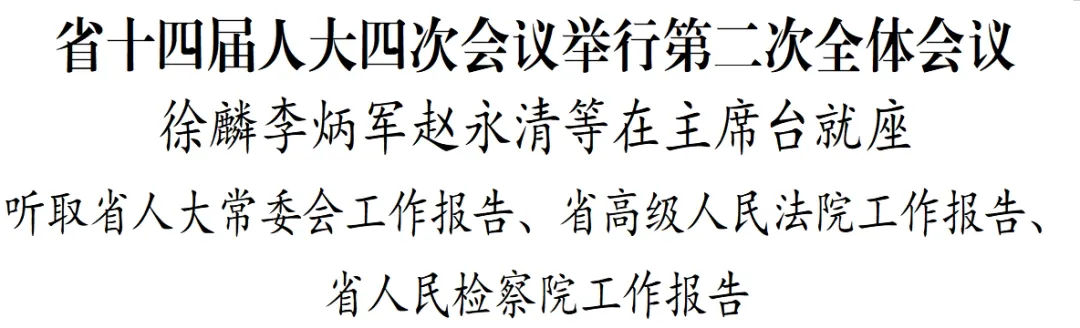 1月29日上午,省十四届人大四次会议举行第二次全体会议,听取省人大常委会工作报告、省高级人民法院工作报告、省人民检察院工作报告。