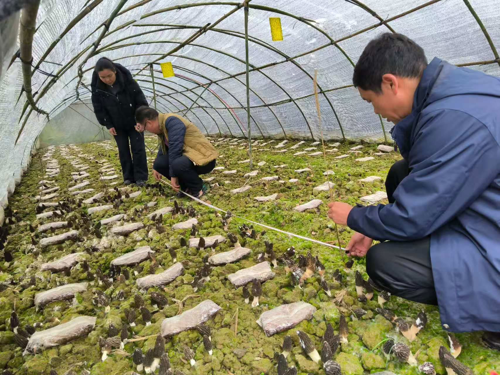 政策宣讲入村到户,产业动员深入人心。2025年12月19日,州人大常委会秘书长、机关党组书记高俊华深入官庄村,宣讲党的二十届四中全会精神,同步开展抓党建促乡村振兴调研与党建结对共建活动,激励基层干部群众真抓实干,让全会精神在乡村振兴一线落地生根。都蓬村产业发展率先破局,党支部书记吴飞带头领办羊肚菌产业,在州市农业部门技术指导下,联动周边2个村抱团发展,共建10个大棚,腊月二十八至正月初九便迎来丰收。经农业部门测产,基地鲜品羊肚菌亩产达500斤,单价50元/斤,总产量2000余斤、产值超10万元,合作社按每斤5元提取集体积累,为村集体经济增收1万余元,产品凭借优良品质上市两周即全部售罄。同时,都蓬、都力两村依托“平良贡米之乡”优质土壤,积极探索“稻鸭鱼菌”生态种养模式,为生态农业丰产丰收蹚出新路径。