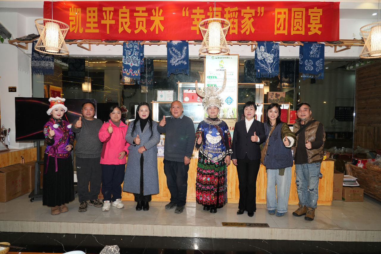 抢滩新春市场,助力产品热销。2026年2月5日至16日,都蓬、官庄两村抢抓春节消费旺季,组织平良贡米、鲜鸡蛋、腌腊制品、生态畜禽等特色年货提前入市,借助凯里风情园贵州村T、香炉山年货节开展线下展销与现场直播,吸引近3万名游客、市民选购。2月13日,驻村工作队牵头、职业经理人全程策划,联合贵州村T文化团队举办“凯里平良贡米幸福‘稻’家团圆宴”助农直播活动,以文化赋能品牌、直播拓宽销路,全面提升农产品知名度与市场竞争力,实现产业增效、农民增收、村集体经济增值的多重效益。