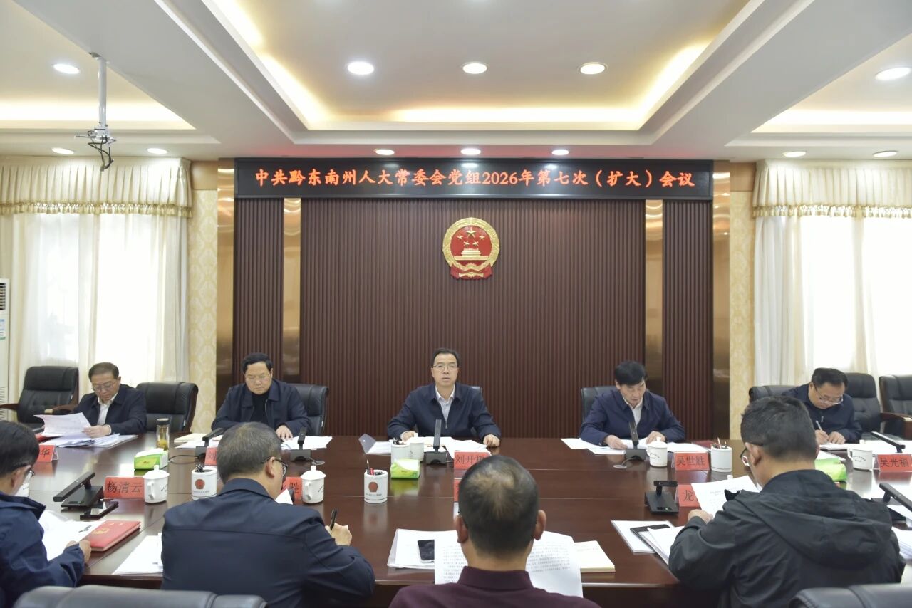 4⽉16⽇,州⼈⼤常委会党组 2026 年第七次(扩⼤)会议暨州第⼗五届⼈⼤常委会第 114 次主任会议召开,传达学习贯彻习近平总书记近期重要讲话精神,重要⽂章精神,传达学习近期省委、州委常委会会议精神,研究贯彻落实措施。州⼈⼤常委会党组书记、主任刘开树主持会议并讲话,州⼈⼤常委会副主任吴世胜、刘隆俊、吴光福,秘书⻓⾼俊华参加。