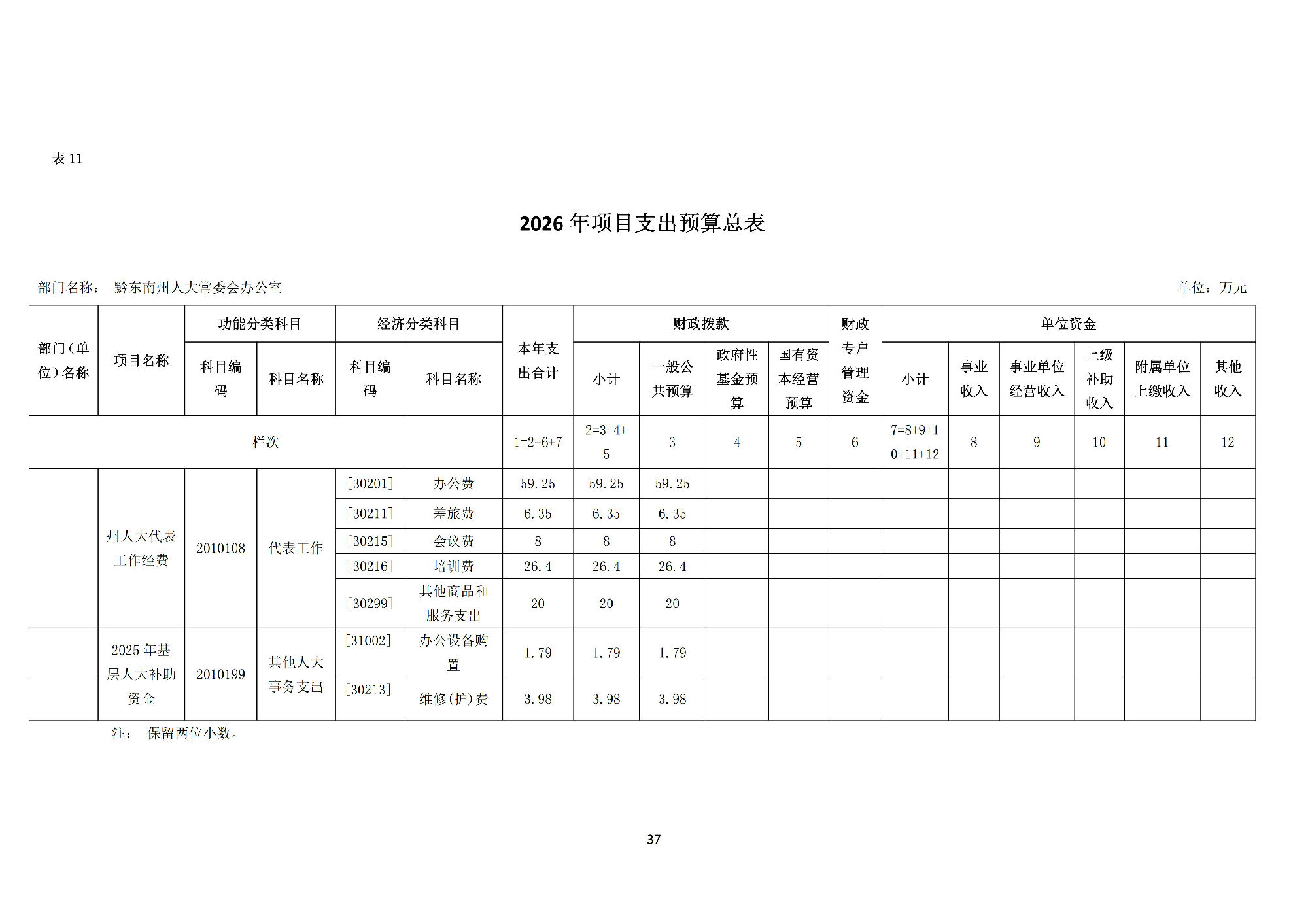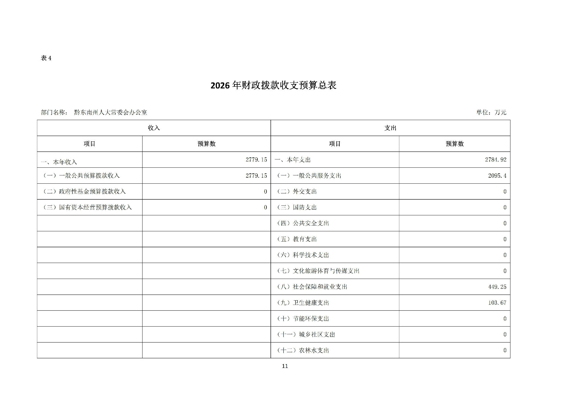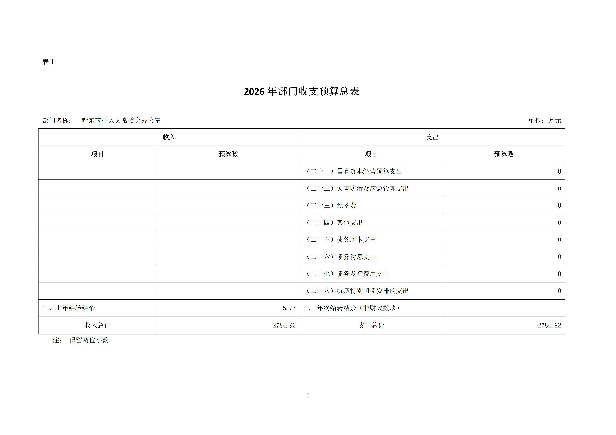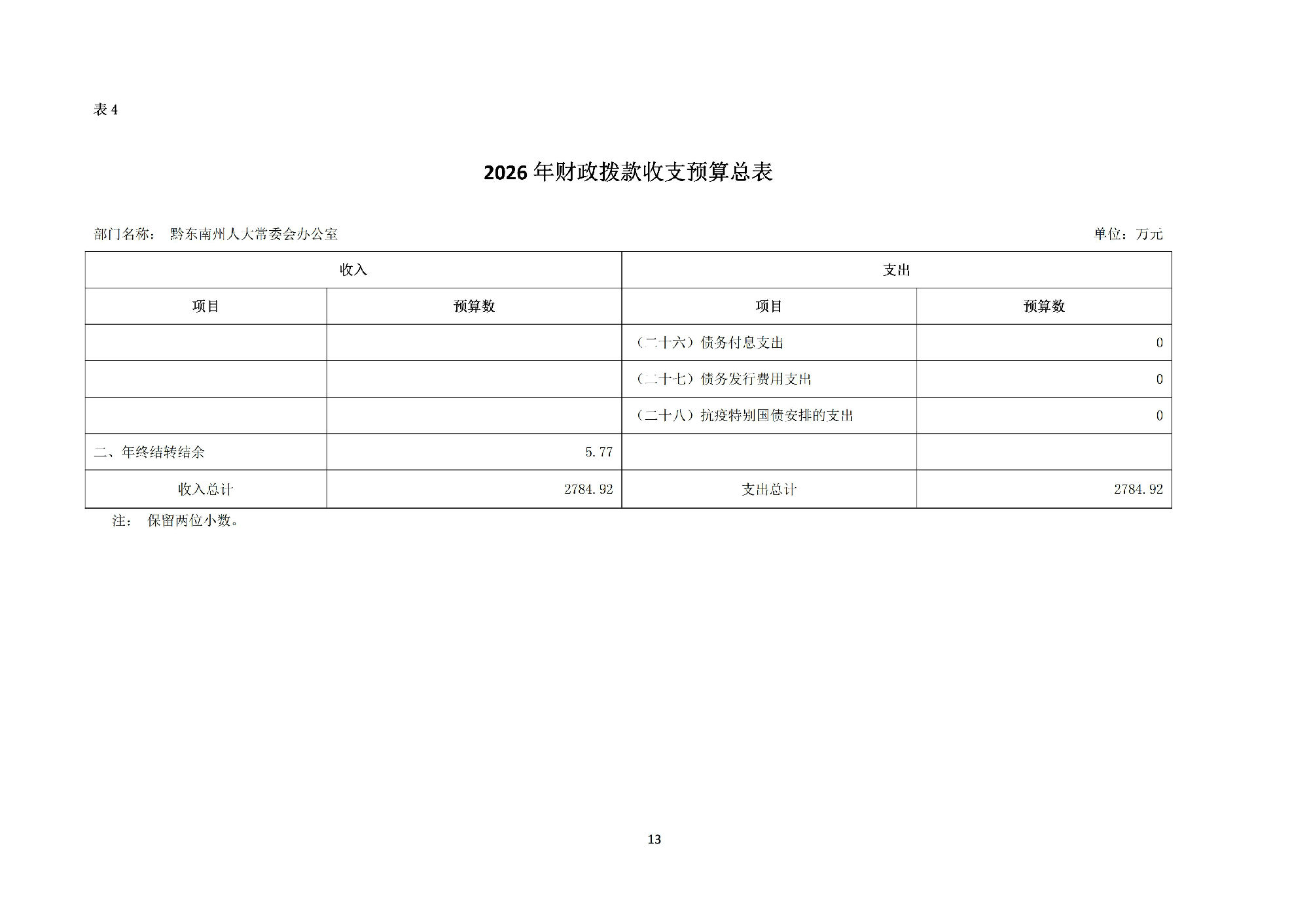 黔东南州人民代表大会常务委员会办公室2026 年部门预算公开信息.pdf