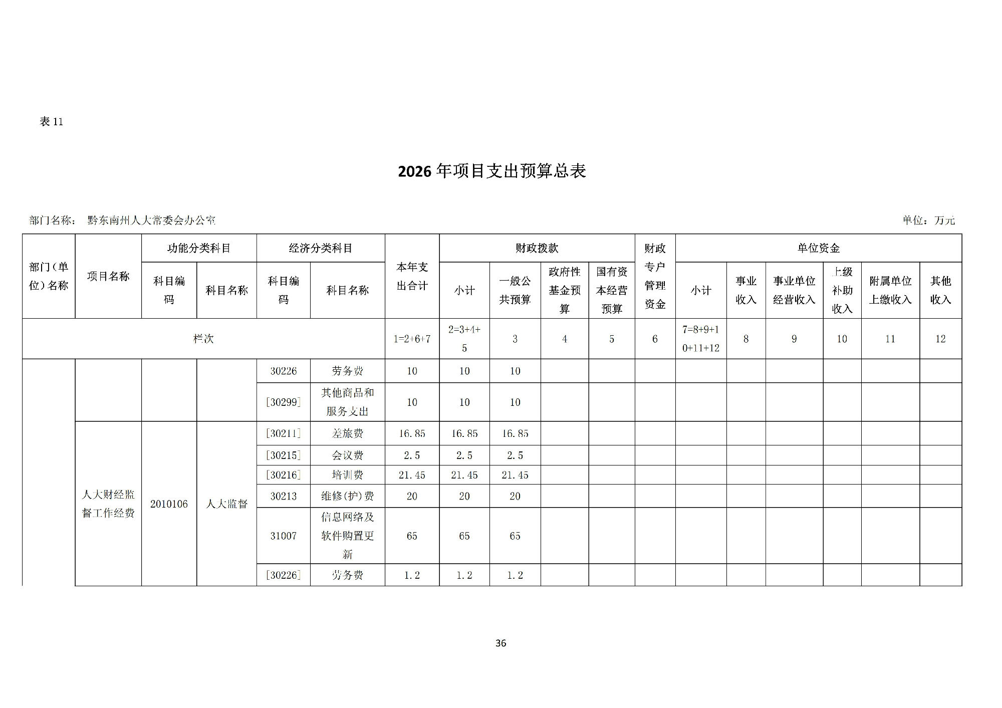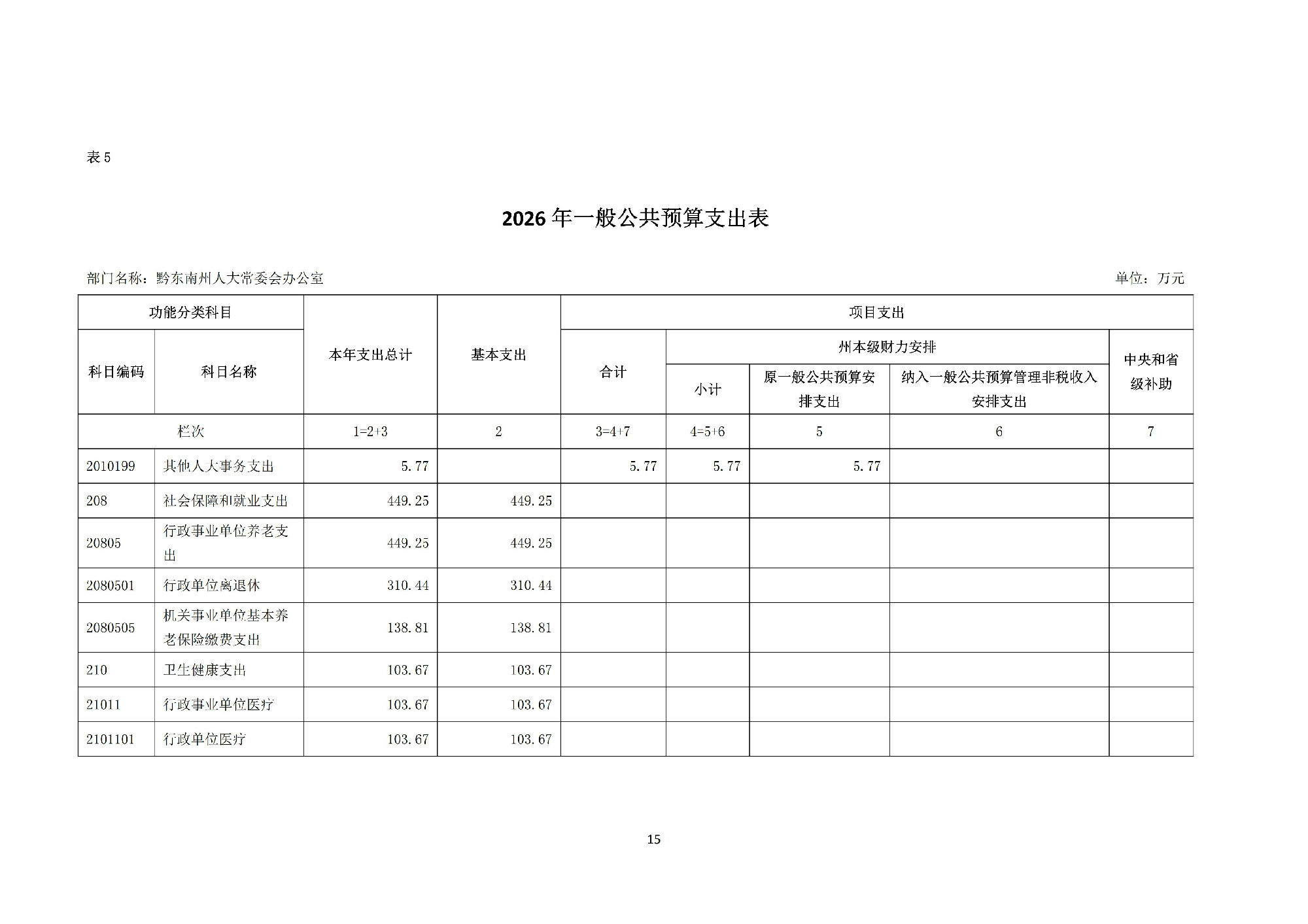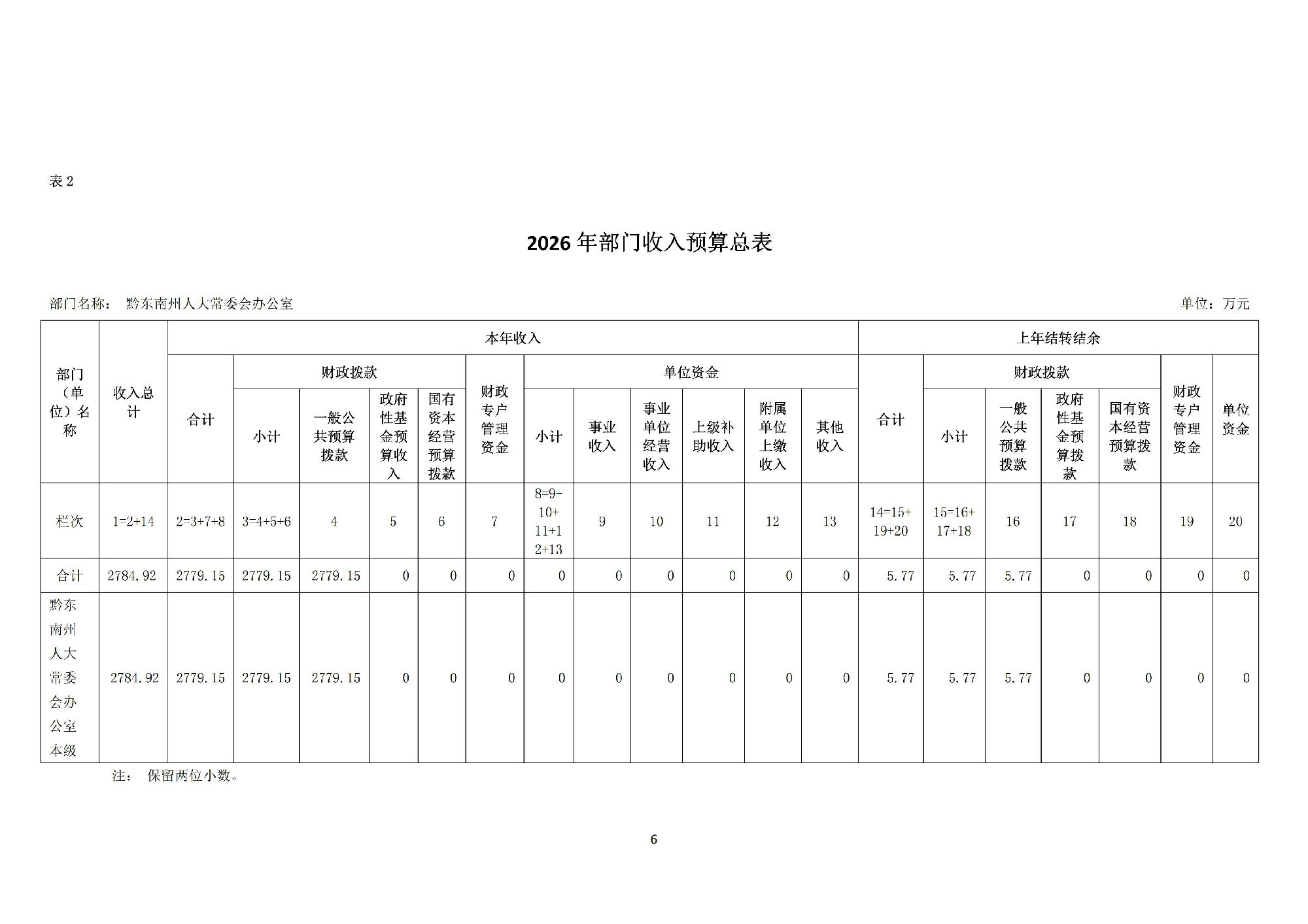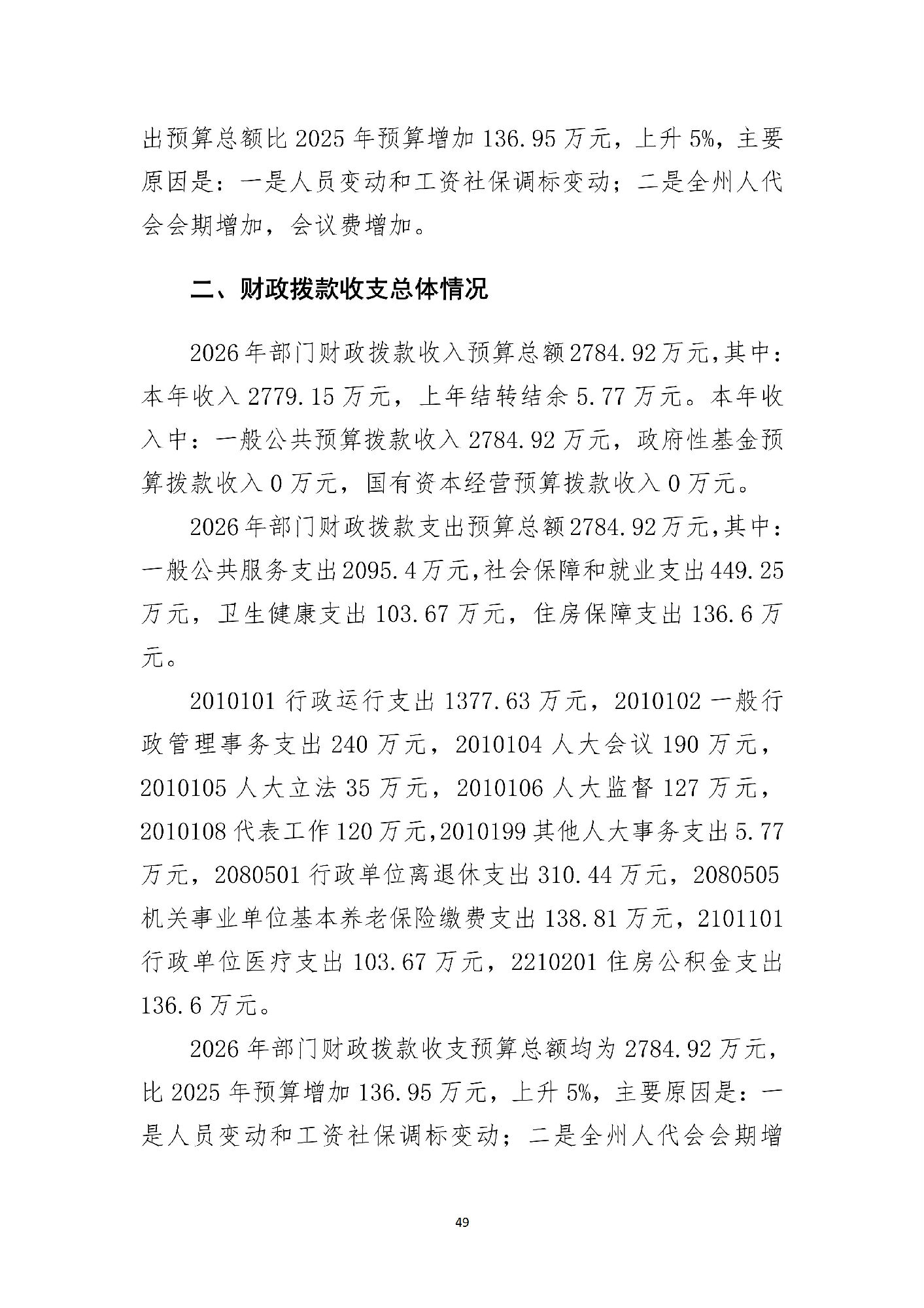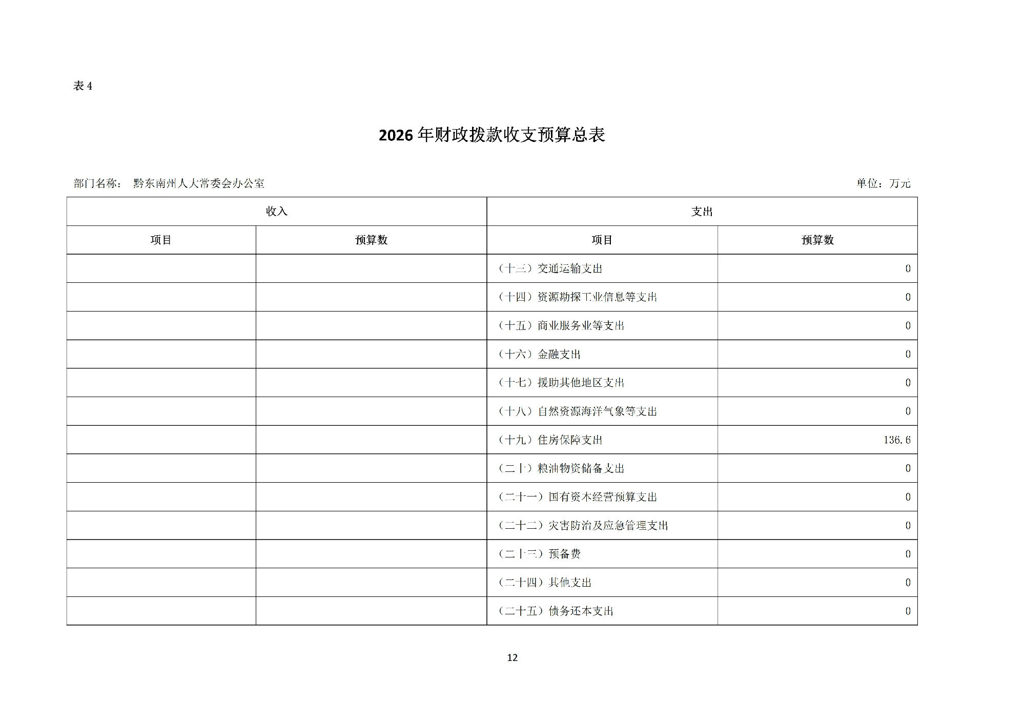 黔东南州人民代表大会常务委员会办公室2026 年部门预算公开信息.pdf