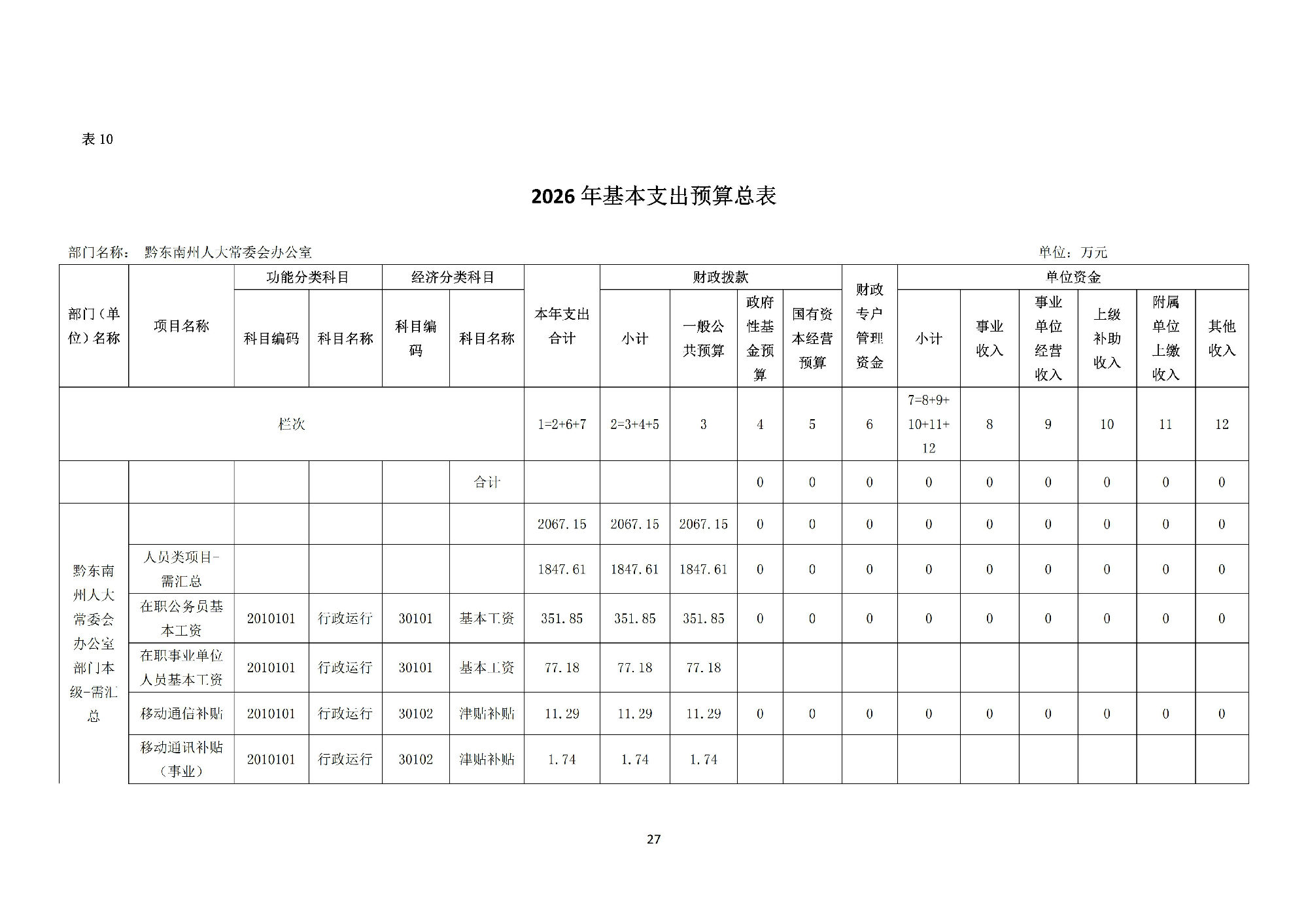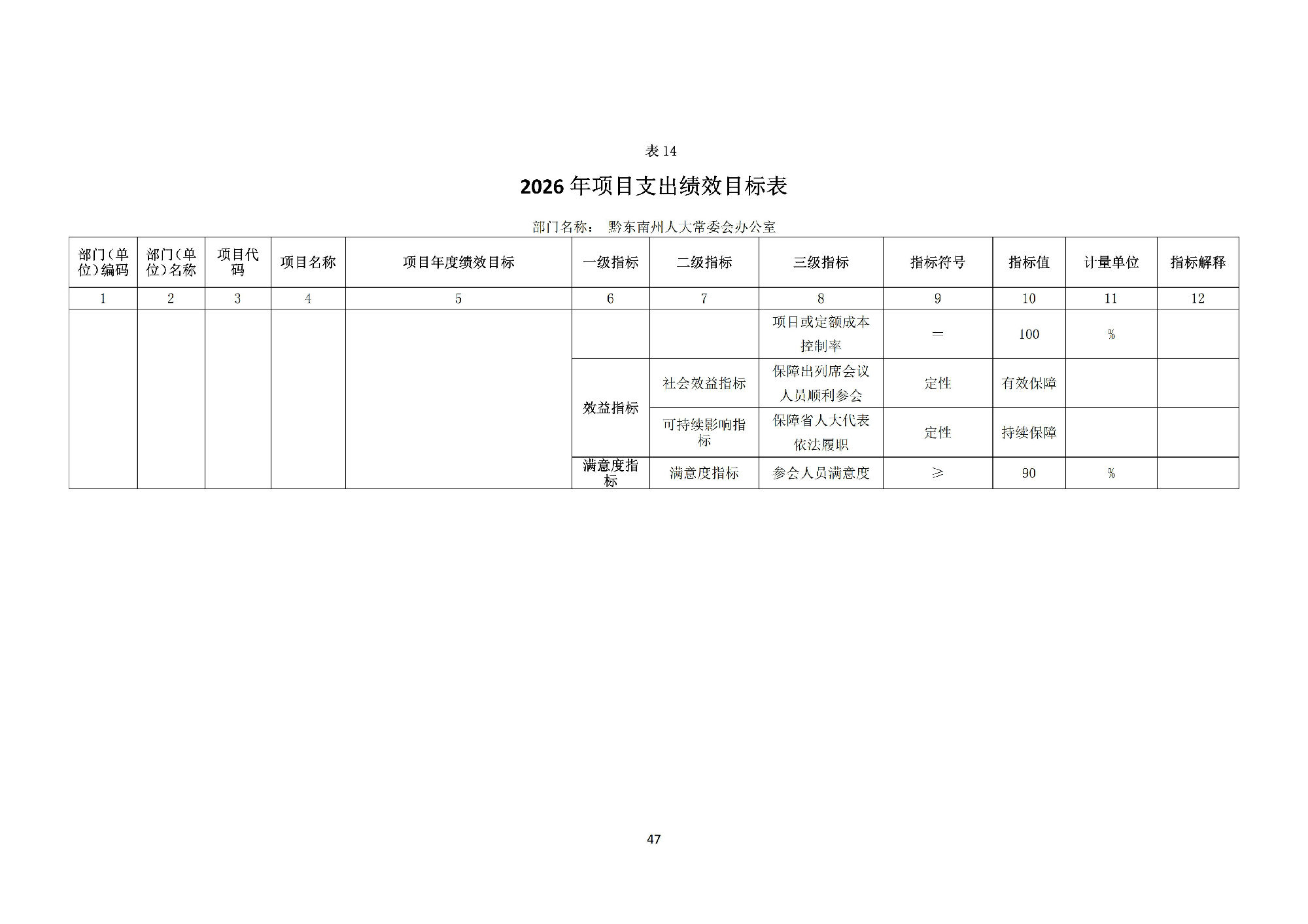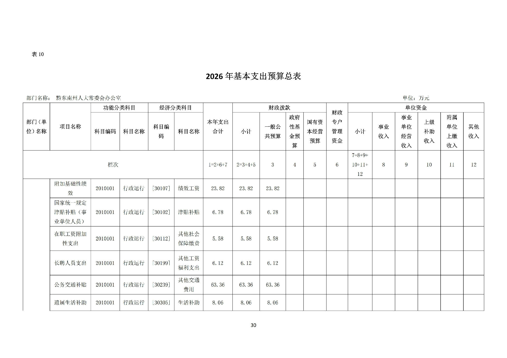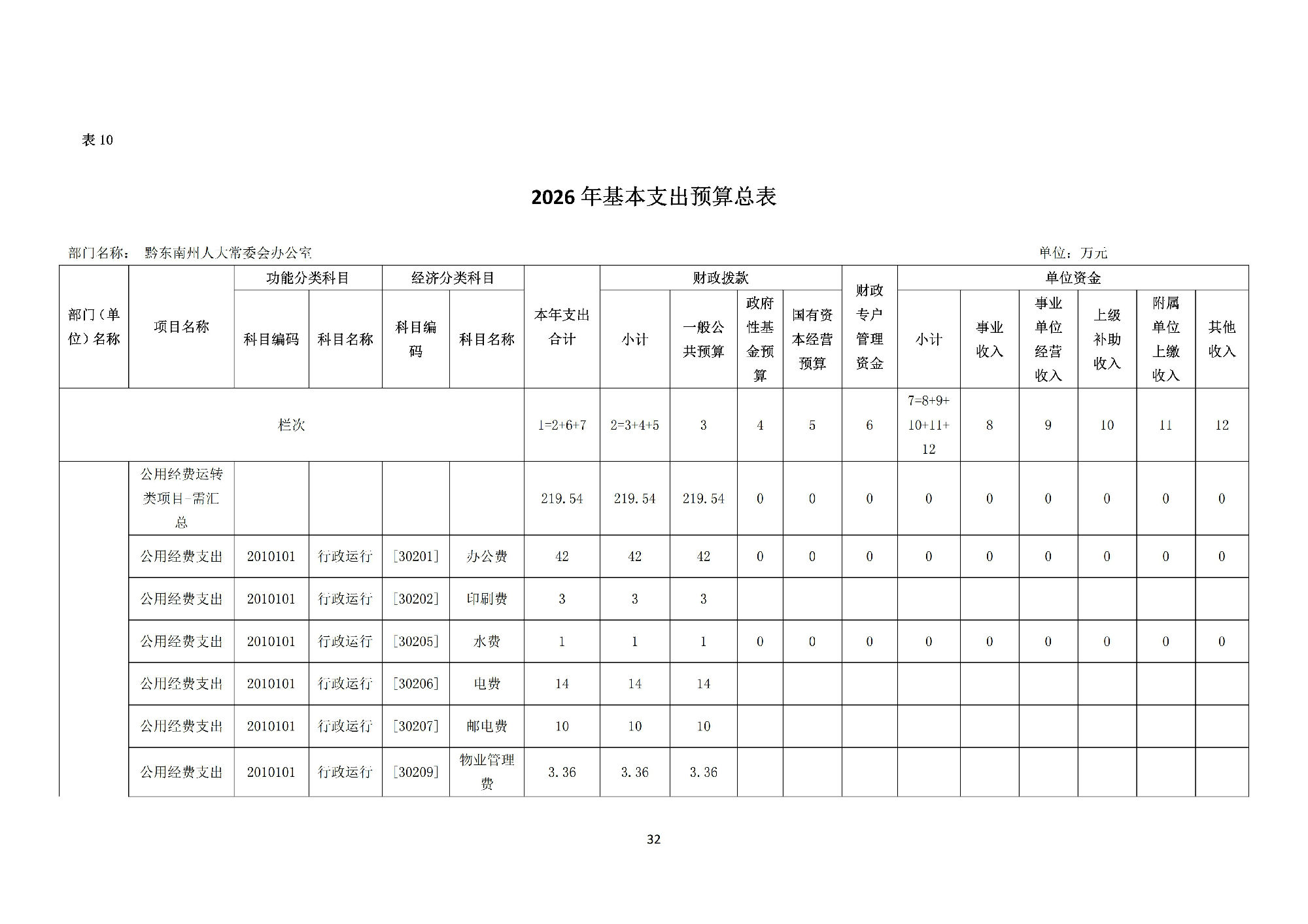 黔东南州人民代表大会常务委员会办公室2026 年部门预算公开信息