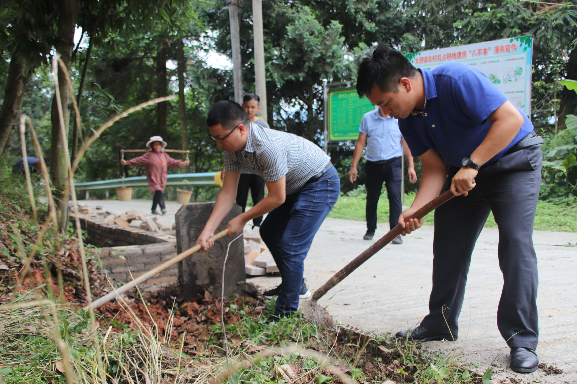 在九仪村和柳落村,大家手持锄头、铁锹、火钳、扫把、小斗车等工具,互相配合,齐心协力共同进行乡村庭院美化,对道路两旁的垃圾、落叶、杂草和杂乱堆放的电线杆等进行清理,确保环境卫生干净无死角,呈现一幅热火朝天的繁忙景象。